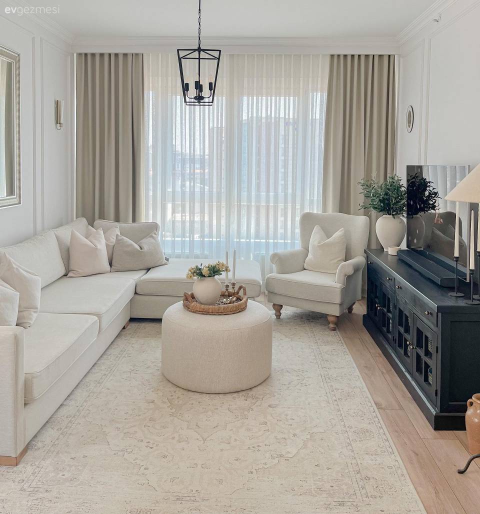Renklerin dengesini sağlamak için griyi ara bulucu seçmiş ev sahibimiz. Bunun dışında siyahın da geçişlerde payı yüksek tutulmuş.