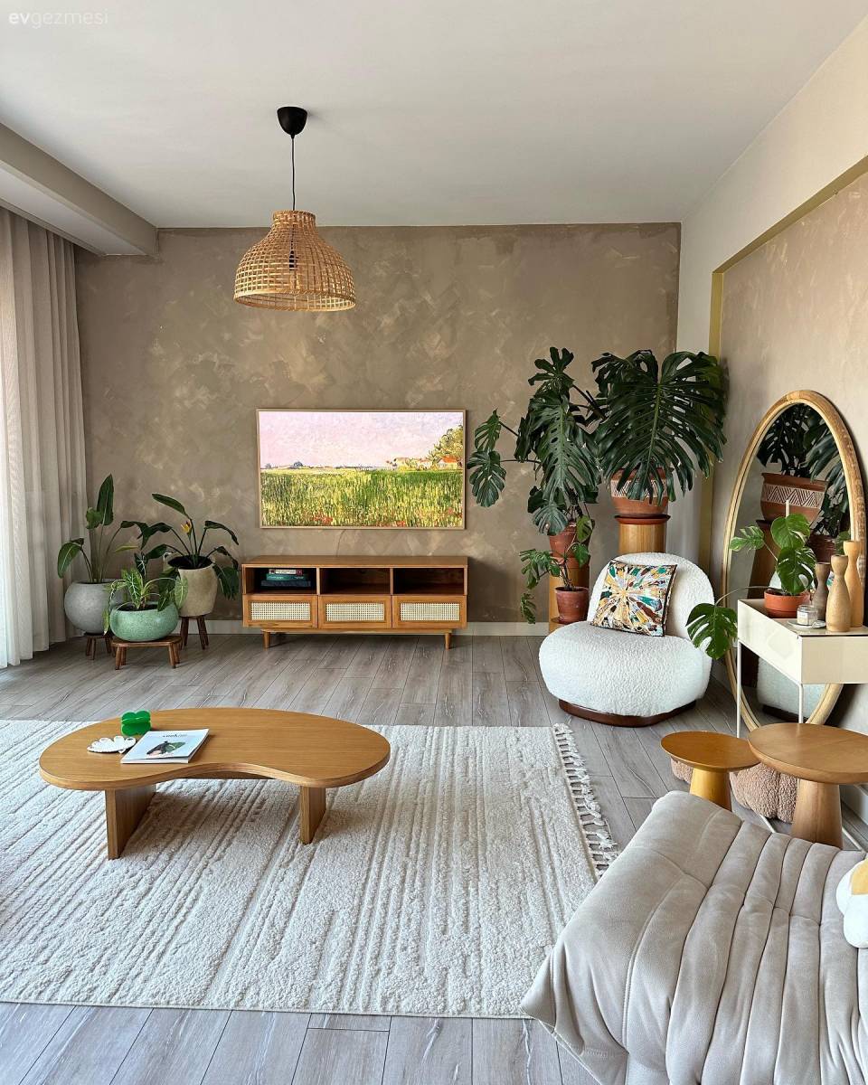 Bir güzel uygulama da duvarda. Arduvaz griye boyanan duvar üzerinde altın varaklar ile hareket yakalanmış.
