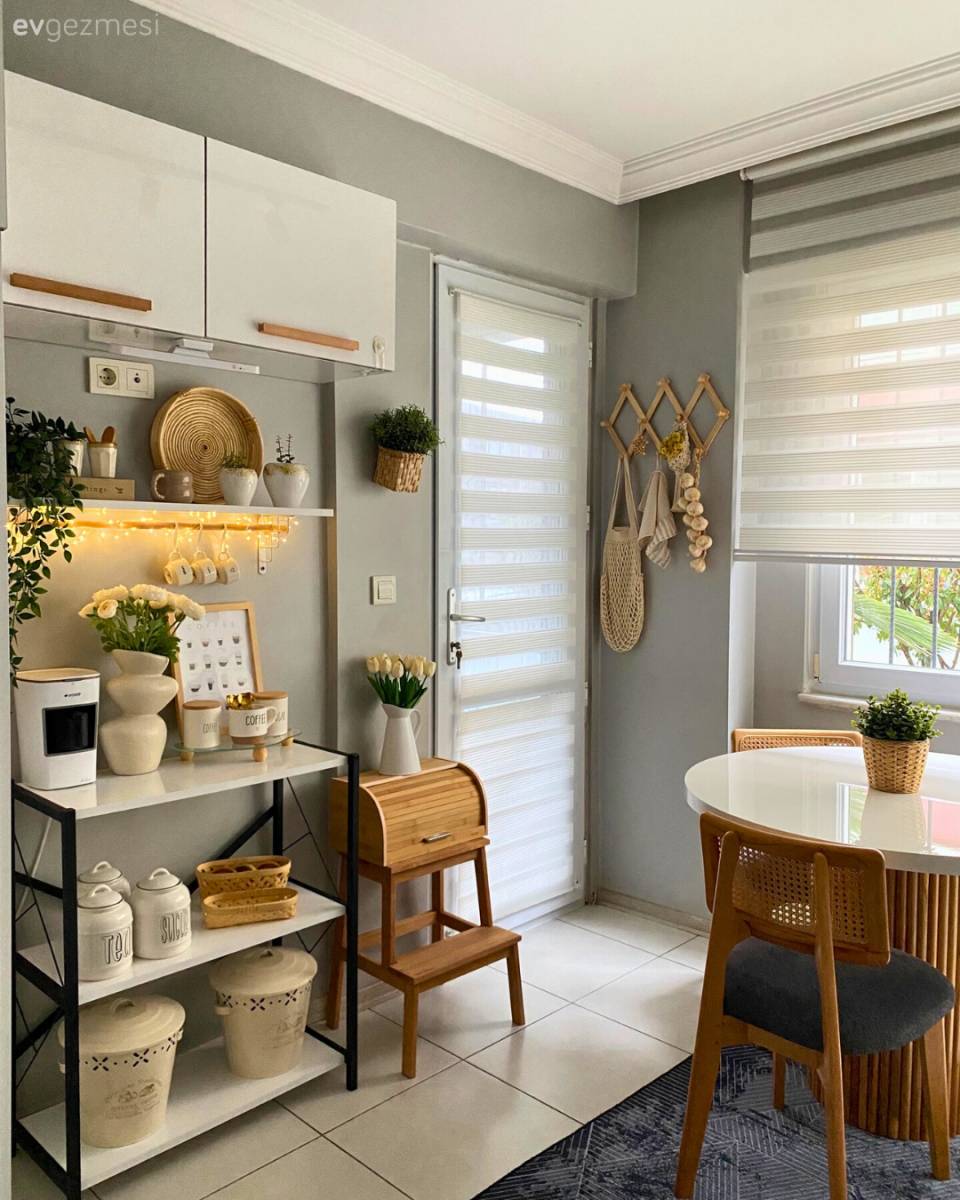 Açık mutfaklı salon ise beyazlara mavi dokunuşlarla canlanıyor. Serin renklerin hakim olduğu bu alan, dingin ve huzur verici bir görünüm kazanıyor. Buyrun konuk olalım..