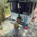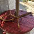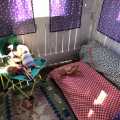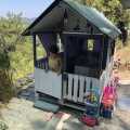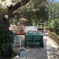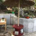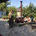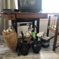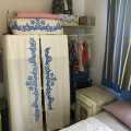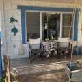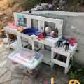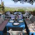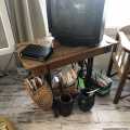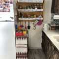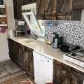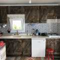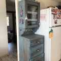 Bu nostaljik vitrin aslında yepyeni. Mutfağın dokusuna uygun olarak eskitme mavi olarak boyanmış.