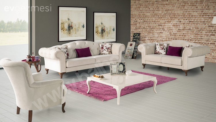 keten gorunumlü koltuk kumasları var beyaz rengıde cok hos duruyor tercıh edebılırsın bır yerde renk katmak ıstersen dekor urunu olabılır belkı bır cıcek belkı bır vazo hos olabılır soft renk:)