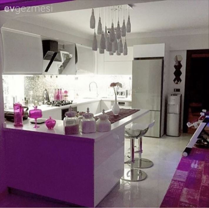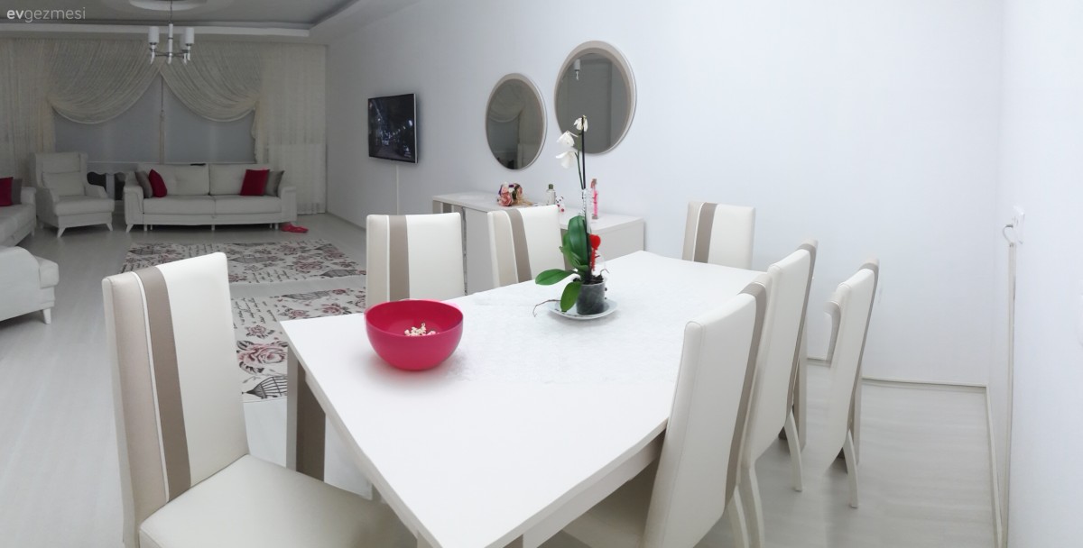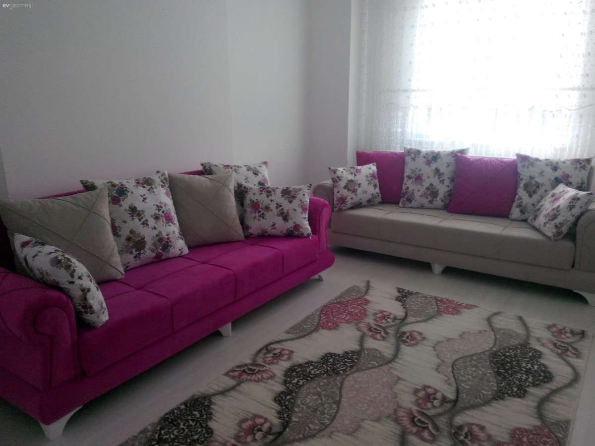 Kübra hanım, eviniz de çok güzel mobilyalarınız da. Ancak yerleştirmeleri de biraz gözden geçirirseniz harika olacak.<br /> <br /> Salon çok geniş, bu yüzden ayırıp 2 bölüm yapsanız güzel olur. Berjerler ayrı ayrı duracağına, yemek bölümüne sırtı ters gelir şeklinde dursa çok daha güzel olur. Konsolu bence kapının olduğu duvara dayayabilirsiniz. Çok daha bütün durur.<br /> <br /> Tv ünitesi almanız gerekli, alan zaten geniş böyle boş kalmış. Yemek bölümü ve oturma bölümünü ayırırsanız 2 halıyı da dağıtırsınız. Sonrası keyifli kısım, duvarlara birkaç tablo veya ayna, berjerler arasına bir fiskos, üzerine de vazo harika olacak.
