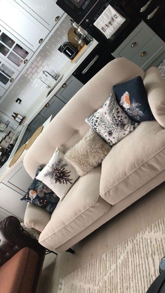 Deri kenarları olan modern chesterfield bir kanepe satın almış. Yanına iki berjer bulmuş. Bir de pofuduk dokusu olan ikili bir koltuk ekleyince yeteri kadar oturma alanı olmuş.