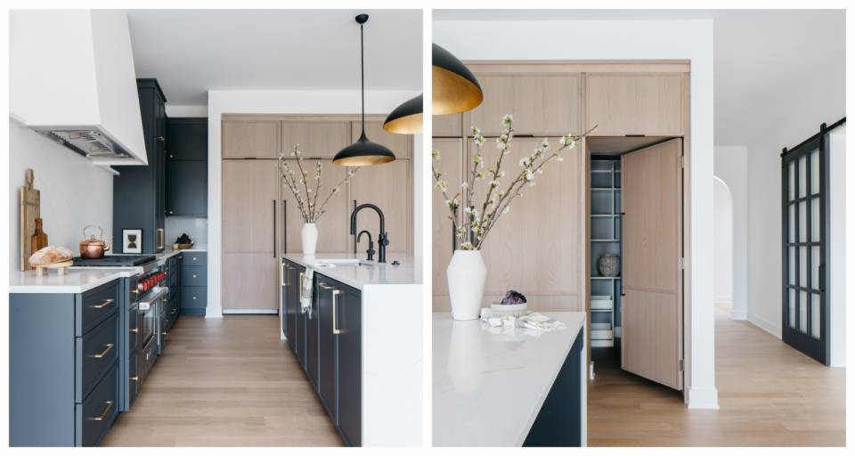 Ahşabın etkisini biraz daha dindirmek için beyaz metro seramikler kullanılmış. Açık raflar ve cam kapaklı dolaplarla da ferahlık pekiştirilmiş.