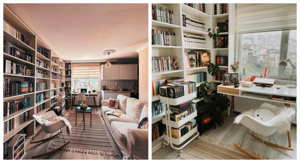 Çoğunlukla açık renklerden seçtiği mobilyalarda yalın tasarımlara yönelmiş. Zaten çok fazla eşyayı da tercih etmemiş!
