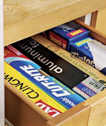 Streç filmleri ve diğer paketleme malzemelerinizi buzdolabına en yakın çekmeceye koyarsanız, hızlıca paketleyip dolaba kaldırabilirsiniz.