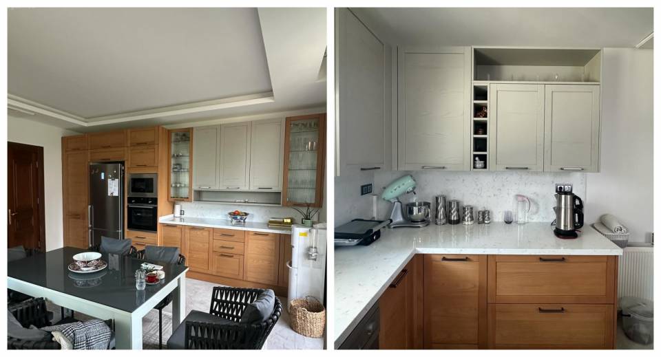 Daha önce eşi ile birlikte mutfağı iki kez değiştiren ev sahibimiz, şimdi de beyaza doğru geçiş yapmış.