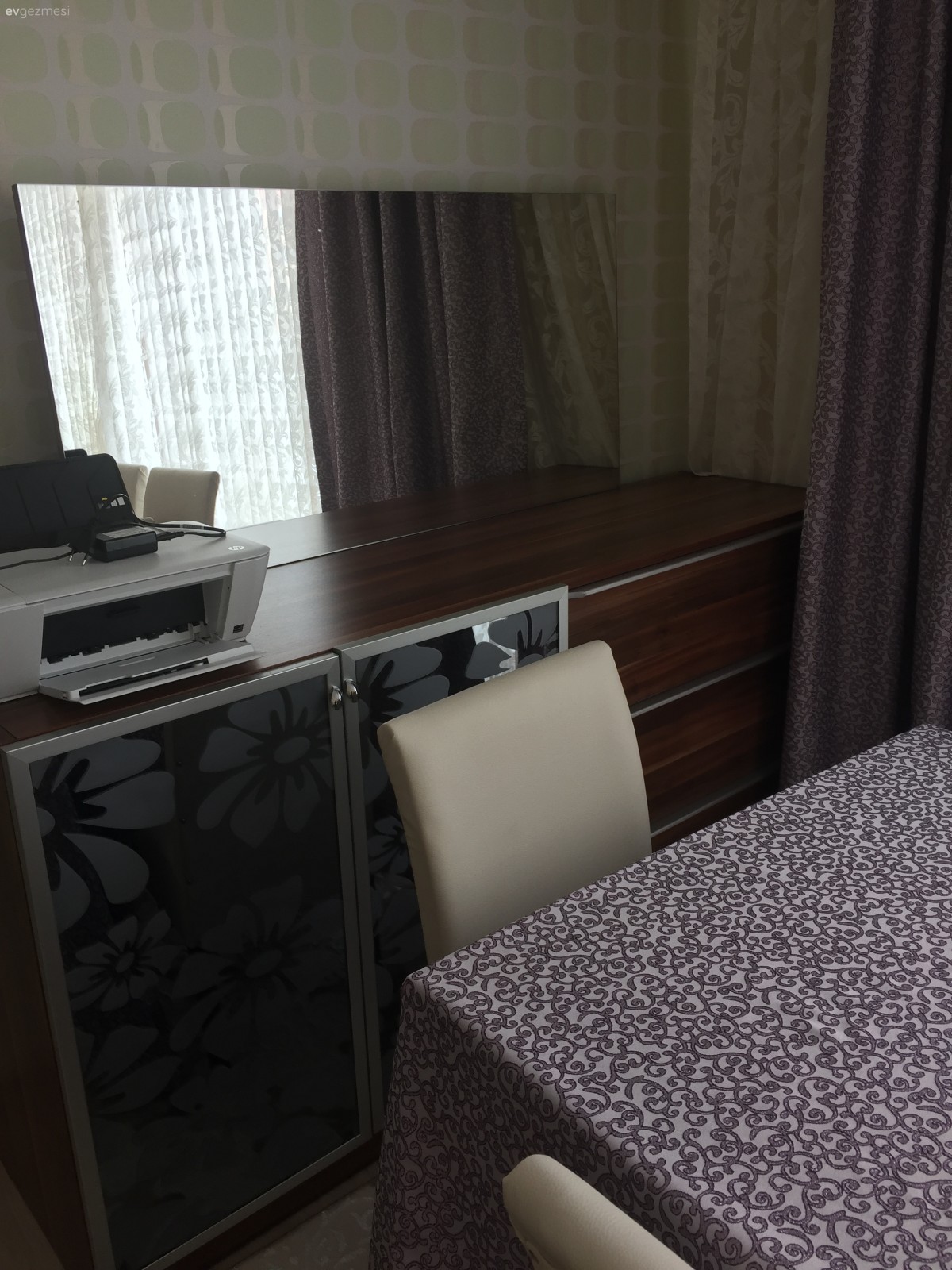 Sakın internetten özellikle evideadan bir şey almaya kalkmayın sorununuz birse bin olur evideadan yeni evime avize alma gafletinde bulundum aylarca gelmedi gelmeyen ürünün parası ve kendisi istendi benden. 4 ay sonra sonunda hiç gelmeyen ürünün nakliyesi kesilmiş halde para iademi alabildim telefonla ulaşmakta imkansız sürekli evideayı dinlettirip duruyorlar ulaştığındada müşteri memnuniyetinin sıfır olduğunu anlıyorsun maalesef. Bence masa örtünüzde ve kırlentlerde problem var gibi duruyor kırlentlerin ya dizilişi yada rengi bana çok itici geldi madem imkanınızda yok ufak tefek şık değişiklikler size odayı hoş gösterebilir köklü değişiklik yaparsanız vakit ve nakit kaybı söz konusu olabilir mobilya boyası kolay değildir kaplamalar asla boyanmaz özel teknik lazım ve masraflı önce ufak değişiklikler yapın bence özellikle o masa örtüsü boyu yerlerde epey tuhaf görünüyor yemek masamı ben kendim küçülttüm sanırım sizinkide büyük konsola çok dayanmış sıkışık gibi sıkışıklık benide geriyor masayı küçültüp üzerine şık minik örtü aksesuar hoş olabilir belki ama siz yaşayan kullanacak olan ve yakından görensiniz her zevk farklıdır başkalarına o kadar kulak asmayın bence :) . Kolay gelsin.