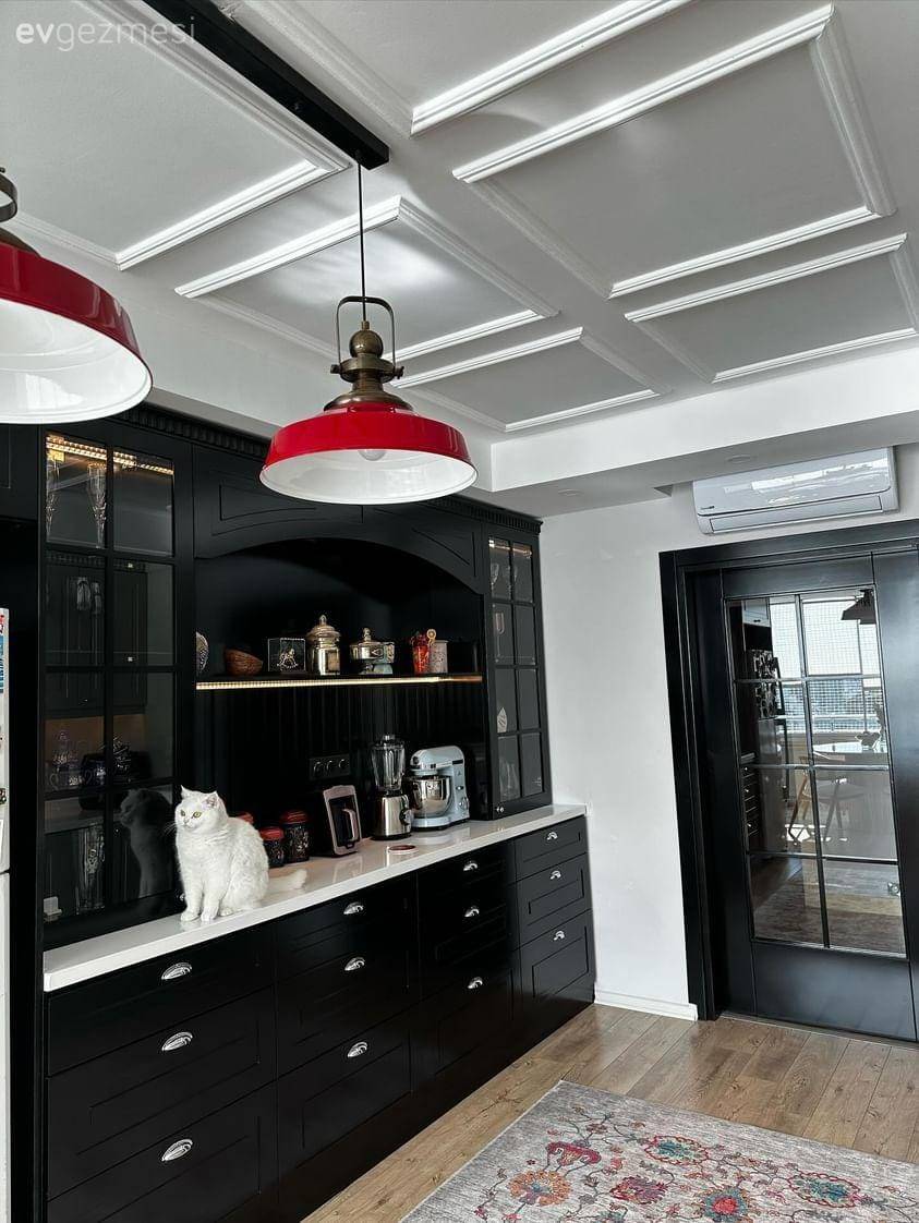 Grafiker olan ev sahibimiz, mesleğini dekorasyonuna yansıtmış: Evinde bazı parçaların çizimini kendisi yapmış.