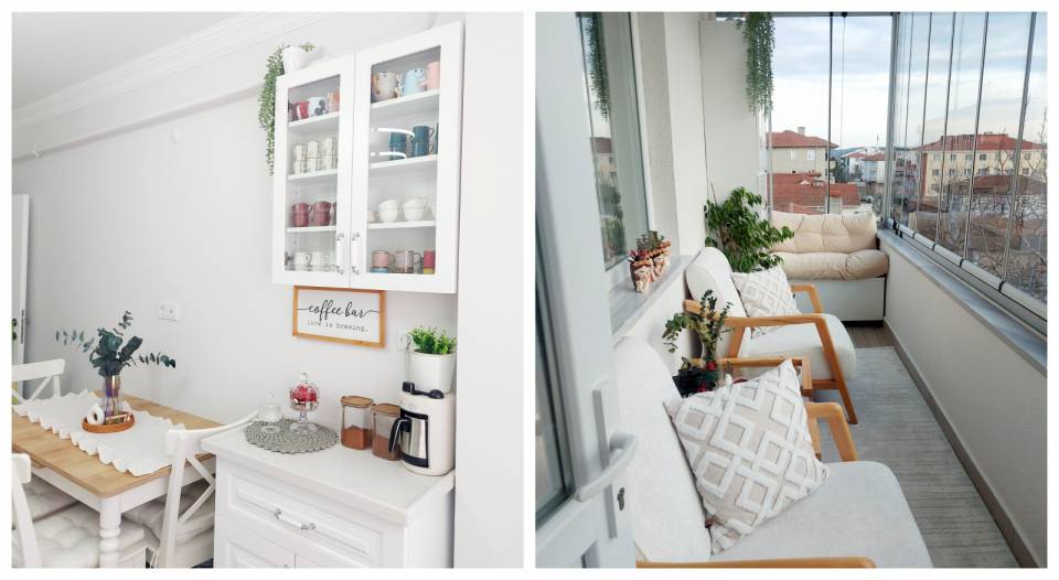 Rum evi olur da balkon olmaz mı? Bu evde de iki balkon yer almış. Maviye boyanan balkonlar, her görenin içerisinde bir şeyler içme hayali kuracağı türden!