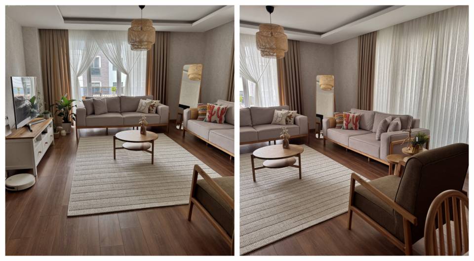 İkinci planımız biraz daha spor bir görünüm üzerinden kurgulandı. Bunun için köşe koltuk tercih edildi.