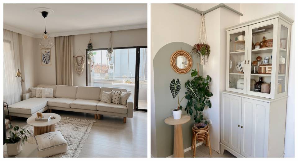 Bizi karşılayan Büşra Hanım'ı az çok tanıdık. Kendisi dekorasyona derinden bağlı ve dekorasyon onun için terapi! Bu yüzden evinde sürekli bir şeyleri değiştiriyor. Tıpkı şimdi göreceğimiz salon gibi!