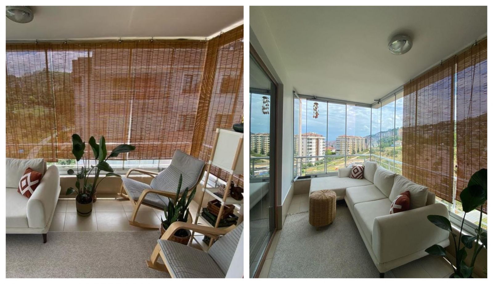 Ortamda bohem tarzı istemiş kendisi! Bunun için bambu perdeler kullanmış. Hasır tamamlayıcılar eklemiş. Eee tabi bitkileri de unutmamış.