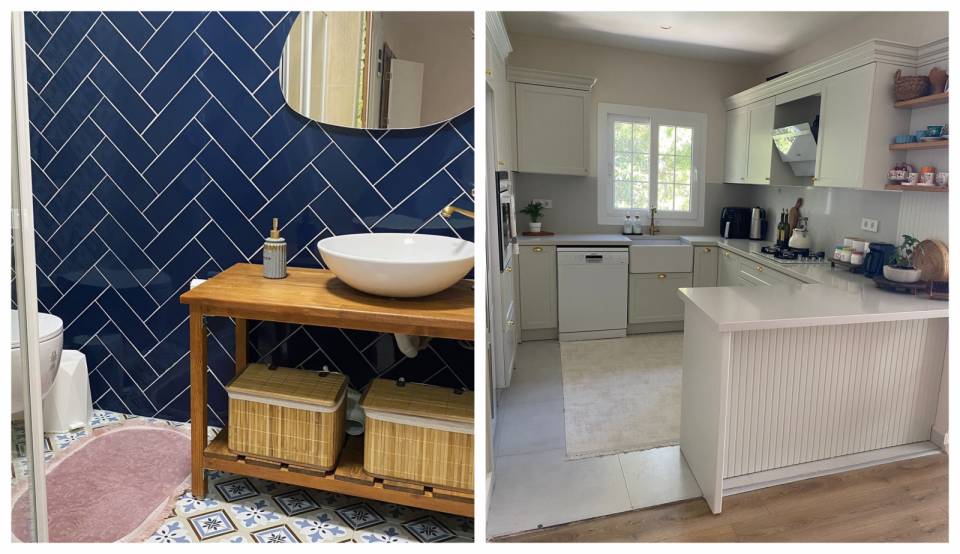 Dekorun renk paleti genel olarak açık ve nötrlerden oluşmuş. Vurgu olarak da kırlentlerde yer alan kiremit tonuna başvurulmuş.