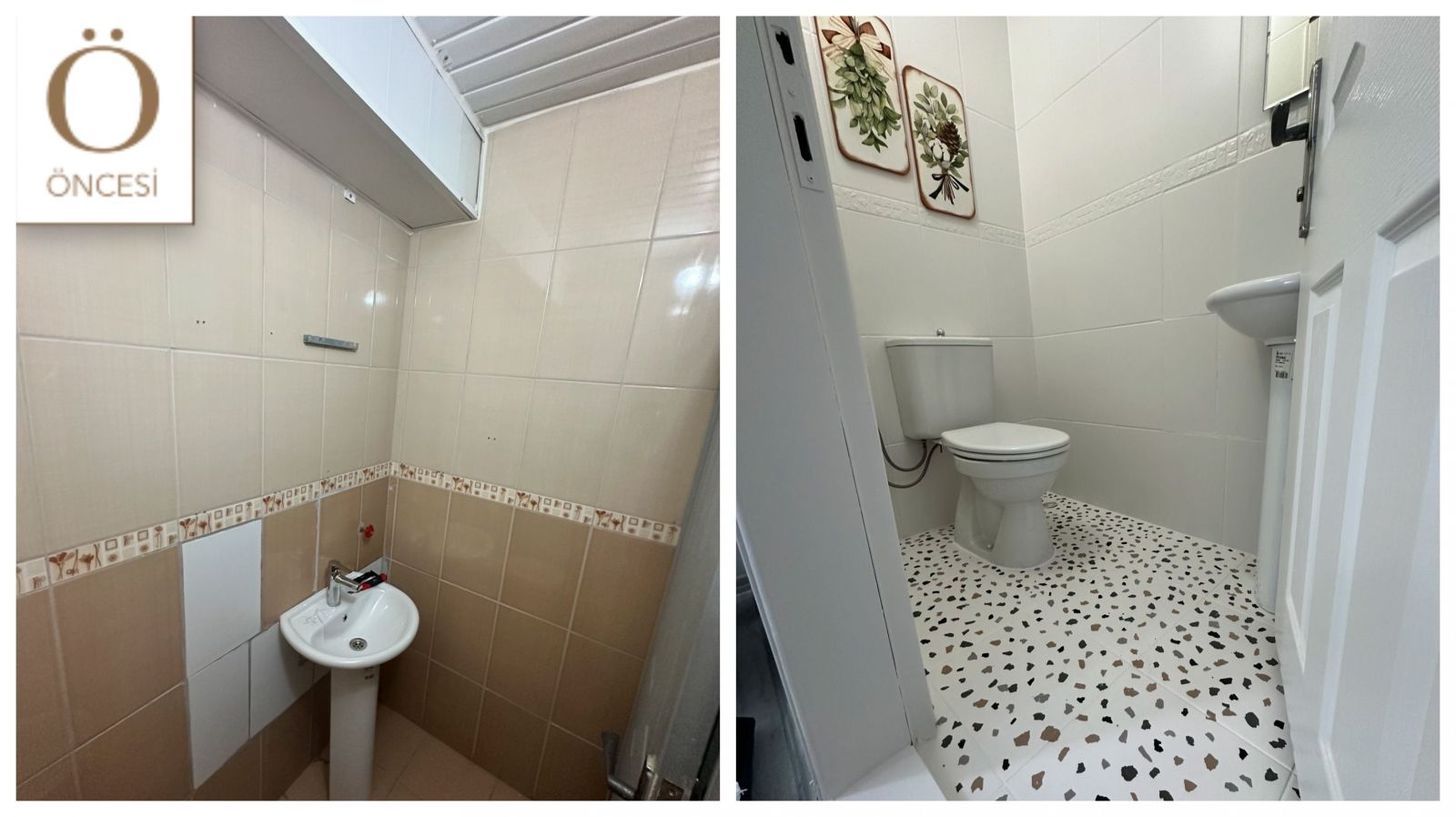 Küçük ve kahverengi seramikleri olan bir tuvalet nasıl daha ferah gösterilir? Aynı zamanda keyif dozu da arttırılır? Bu soruların yanıtını Nur Hanım bize veriyor.