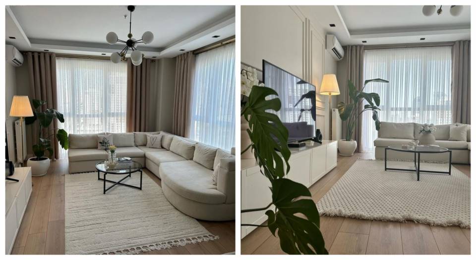 Salon, Modern, Bohem Dekorasyon, Beyaz, Bej, Kahverengi, Fon perde, Perde, Tül perde, Koltuk takımı, Cam orta sehpa, Orta sehpa, Halı, Berjer, Tv ünitesi, Tv ünitesi aksesuarları, Ev Aksesuar, Salon halısı, Avize, Aydınlatma