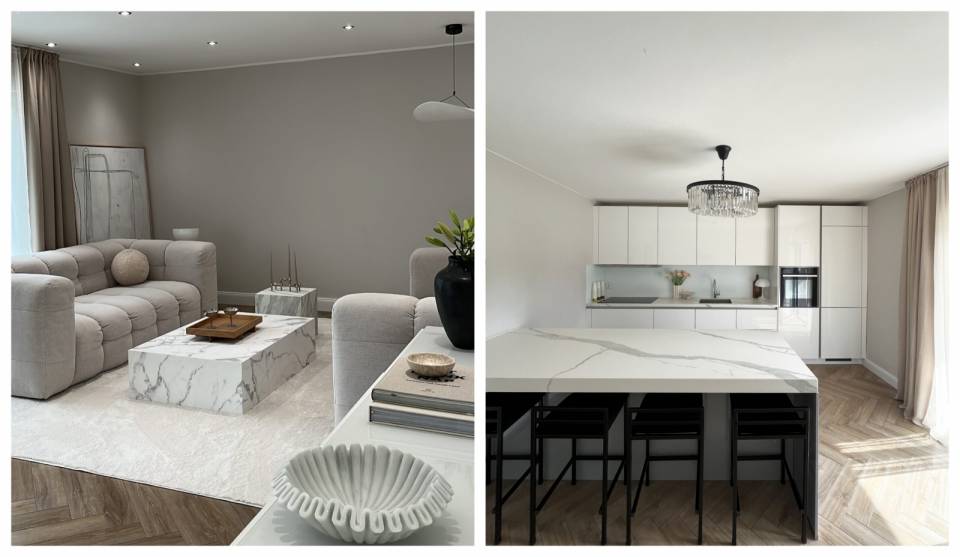 Salon gibi İskandinav stilin baskın olduğu diğer bir alan da mutfak olmuş. Aslında küçük olan bu bölüm açık renkleri sayesinde basık görünümden kurtulmuş.