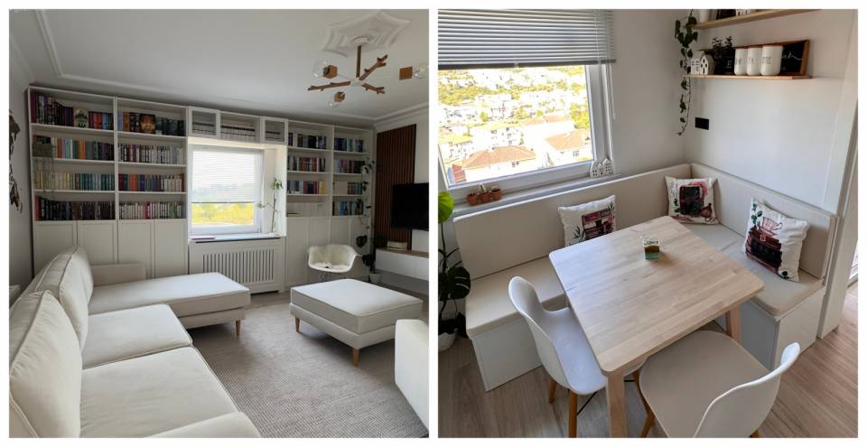 Mutfak, Beyaz, Mavi, Mutfak boyama, Mobilya boyama, Mutfak tezgahı, Mutfak tezgah arası, Tezgah arası seramik, Mutfak aksesuarları