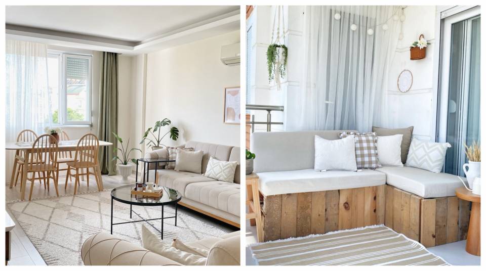 Balkonda oluşturulan geniş oturma alanı ile burası adeta evin ikinci salonuna dönüşmüş.