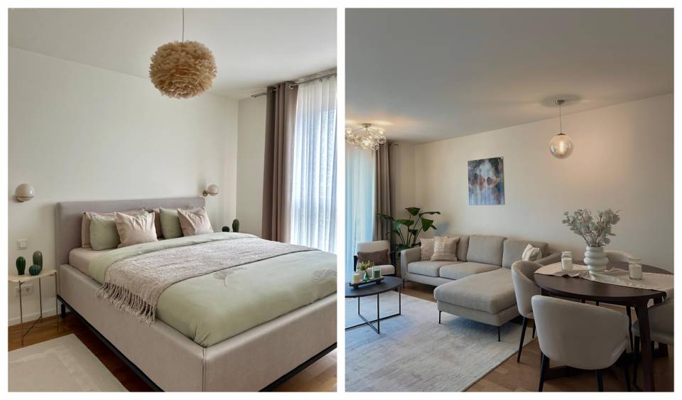 Evde bizi ilk olarak karşılayan açık konseptli salon ve mutfağında koltuklar kapitone olmuş. Dolaplar shaker... Tam da countrynin sevdiği gibi!