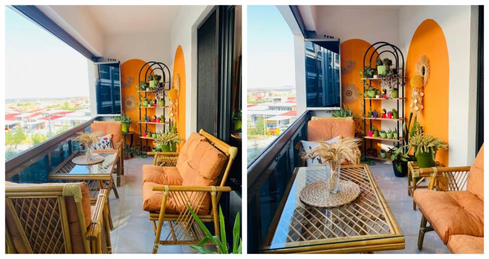 Salon, Bohem Dekorasyon, İskandinav, Sarı, Turuncu, Ahşap Mobilya, Koltuk takımı, Yeşil, Fon perde, Perde, Tül perde, Ev bitkisi, Yemek masası, Sandalye, Berjer, Jüt halı, Halı, Dekoratif Objeler, Şömine, Parke