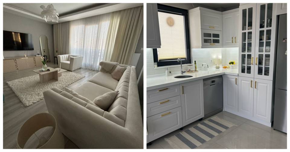 Önce ki ziyaretimizde Büşra Hanım salonunda gri renge ağırlık vermişti. Şimdi alanın paletinde açık tonlara geçiş yapmış.