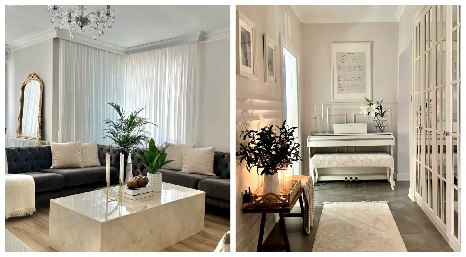 Açık tonlar, özenli detaylar ve bitmeyen zarafet! Evet şimdi konuk olacağımız evi kısaca böyle tanmlayabiliriz.