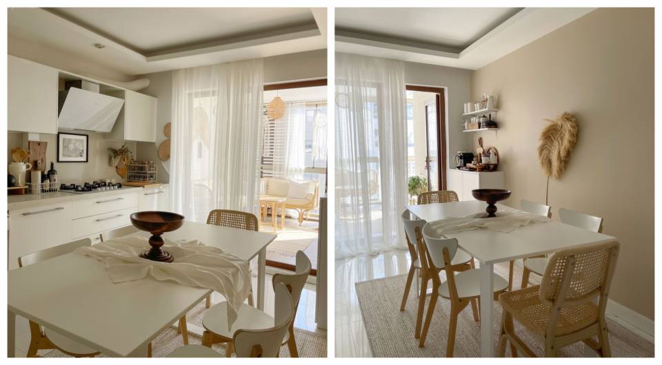 Bu mobilyaları tamamlayan orta sehpa, yemek masası ve sandalyeler ise İskandinav ve modernden esinlenmiş.