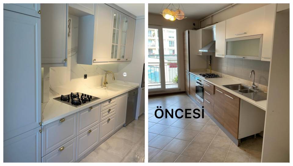 Mutfağın tavan kısmı biraz alçak kalmış. Bunun nedeni de loft kat ve orada yer alan ekstra yatak odası olmuş.