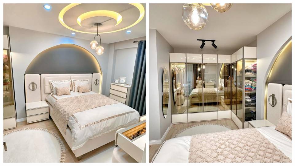 Eski bir lojmanın renovasyonu olan bu dekorda ortamın daha şık görünmesi için çıtalara başvurulmuş. Sonuca bakınca bu tercih gayet de yerinde olmuş!