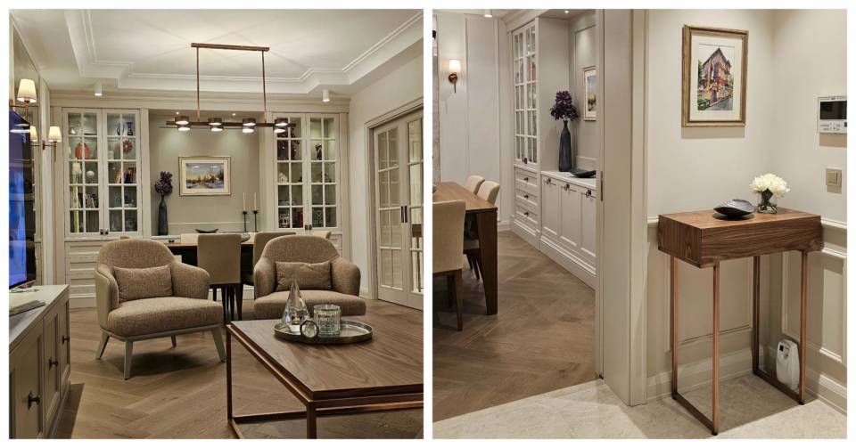 Salon, Modern, Country, Vizon, Bej, Tül perde, Perde, Soba, Konsol, Konsol üzeri dekoratif objeleri, Kırlent, Ev tekstili, Kapitoneli koltuk, Koltuk takımı, Orta sehpa, Sehpa, Halı