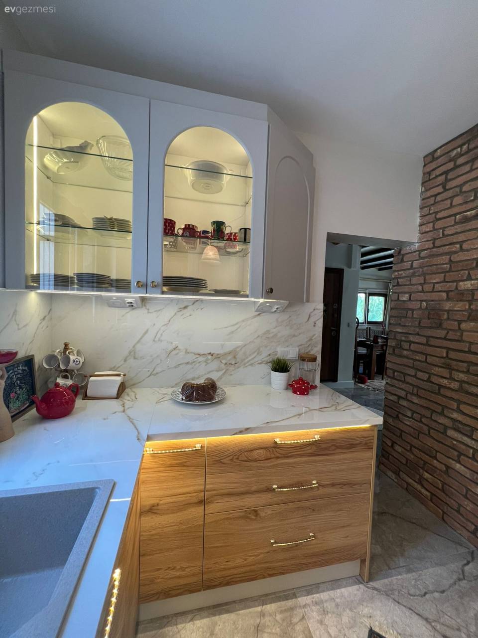 Kısa bir tadillattan geçen bu evde banyo ve mutfak değiştirilmiş. Kalan yerler de yeni mobilyaları ile güzelleşmiş.