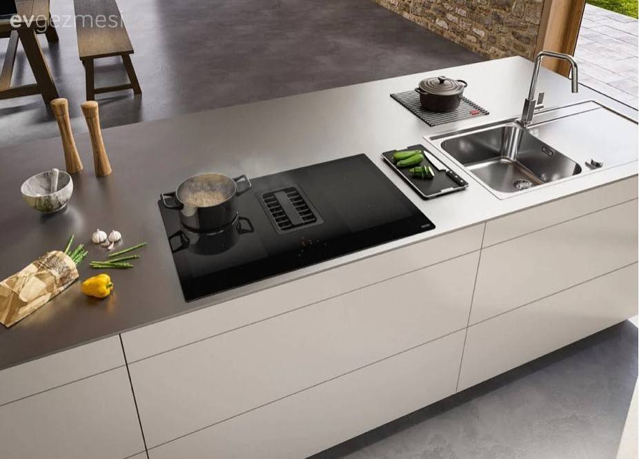 Mutfak, Beyaz mutfak, Shaker kapaklı dolaplar, Mutfak tezgahı, Mutfak tezgah arası, Eviye , Mutfak bataryası, Mutfak perdesi, Mutfak aksesuarları
