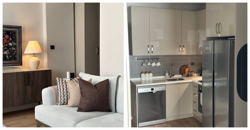 Mutfak ve banyo çok büyük değilmiş. Bu sebeple her iki alanı da verimli kullandıracak tasarımlar ortaya çıkarılmış.