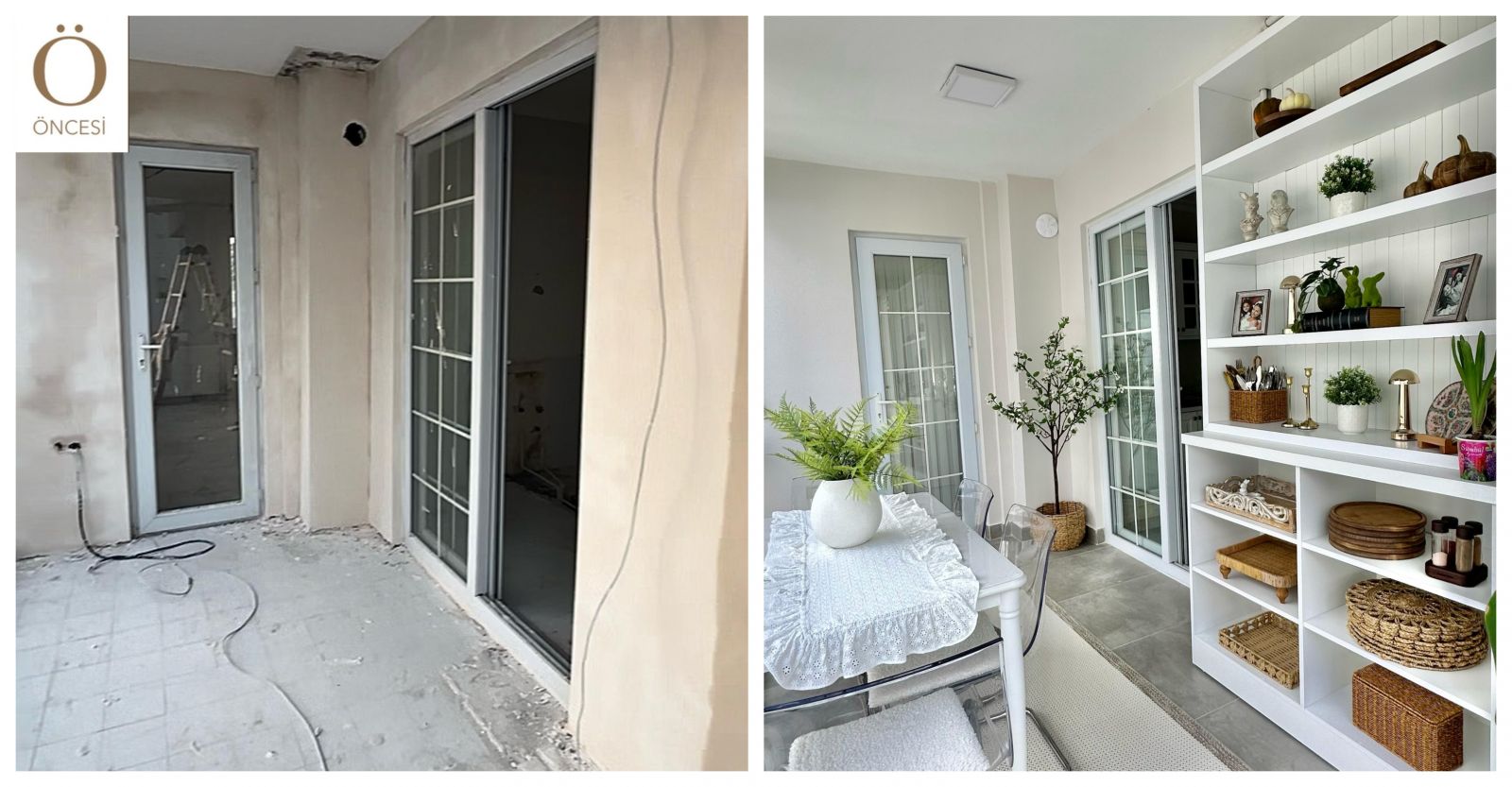 Sonrasında balkonun duvarları boyanmış. Daha ferah bir görüntü için iç mekan detayları hazır olmuş.