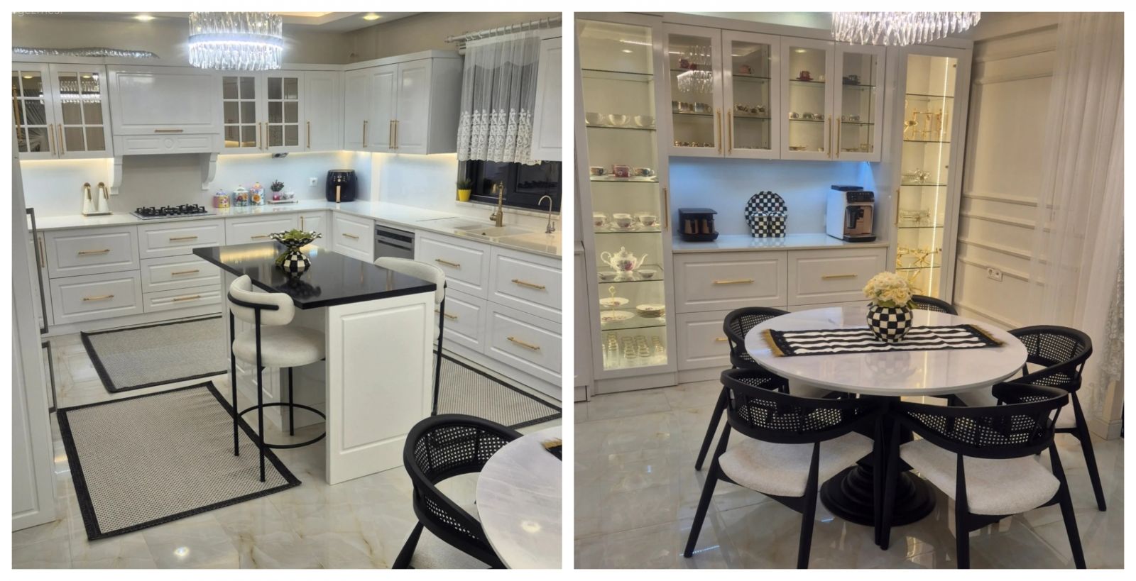 Mutfağın tasarımı yapılırken art deko ve modern tarzdan ilham alınmış: Geniş alanlar moderne, detaylar art dekoya emanet edilmiş!