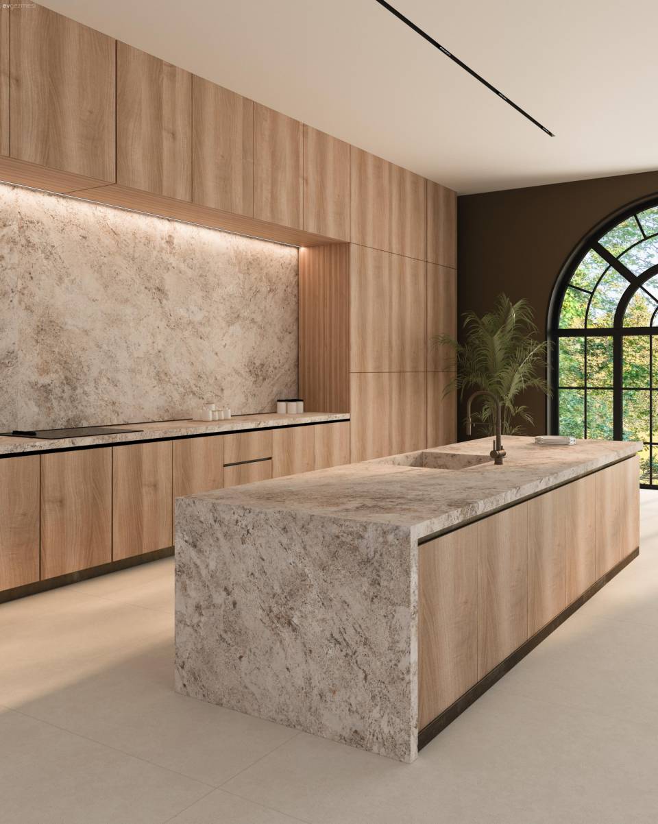 Dolaplarda beyaz renk kullanılmış. Bunun dışında masa, sandalye ve iç mekan detaylarında da beyaz öne çıkmış.