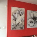 Hem mobilyada hem duvarda yataktaki yorganda hatta yastıkta bile aynı figürler var. Harika bence güle güle kullanın. Güzel şeyler zahmet gerektirir emeğinize sağlık