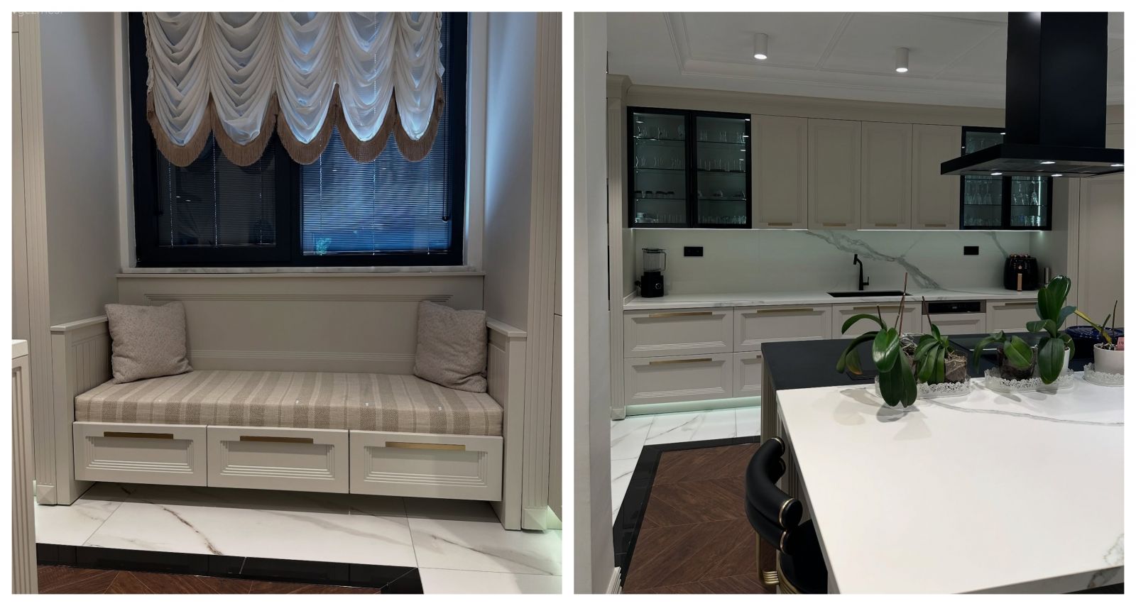 Şimdi konuk olacağımız mutfakta modern tasarım ve yenilikçi teknolojiler bir arada kullanılmış. Hatta işin içine neoklasik yansımalar bile dahil edilmiş.