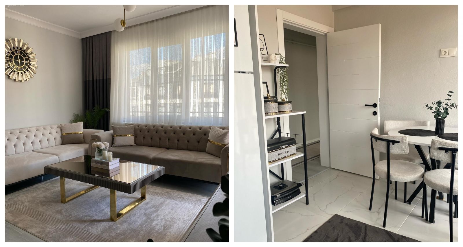 Ortamın konforlu olması önemli! Bunun farkında olan ev sahibimiz geniş oturum sağlayan koltuklar seçmiş. Sandalyeler de bu konforu sürdürmüş.