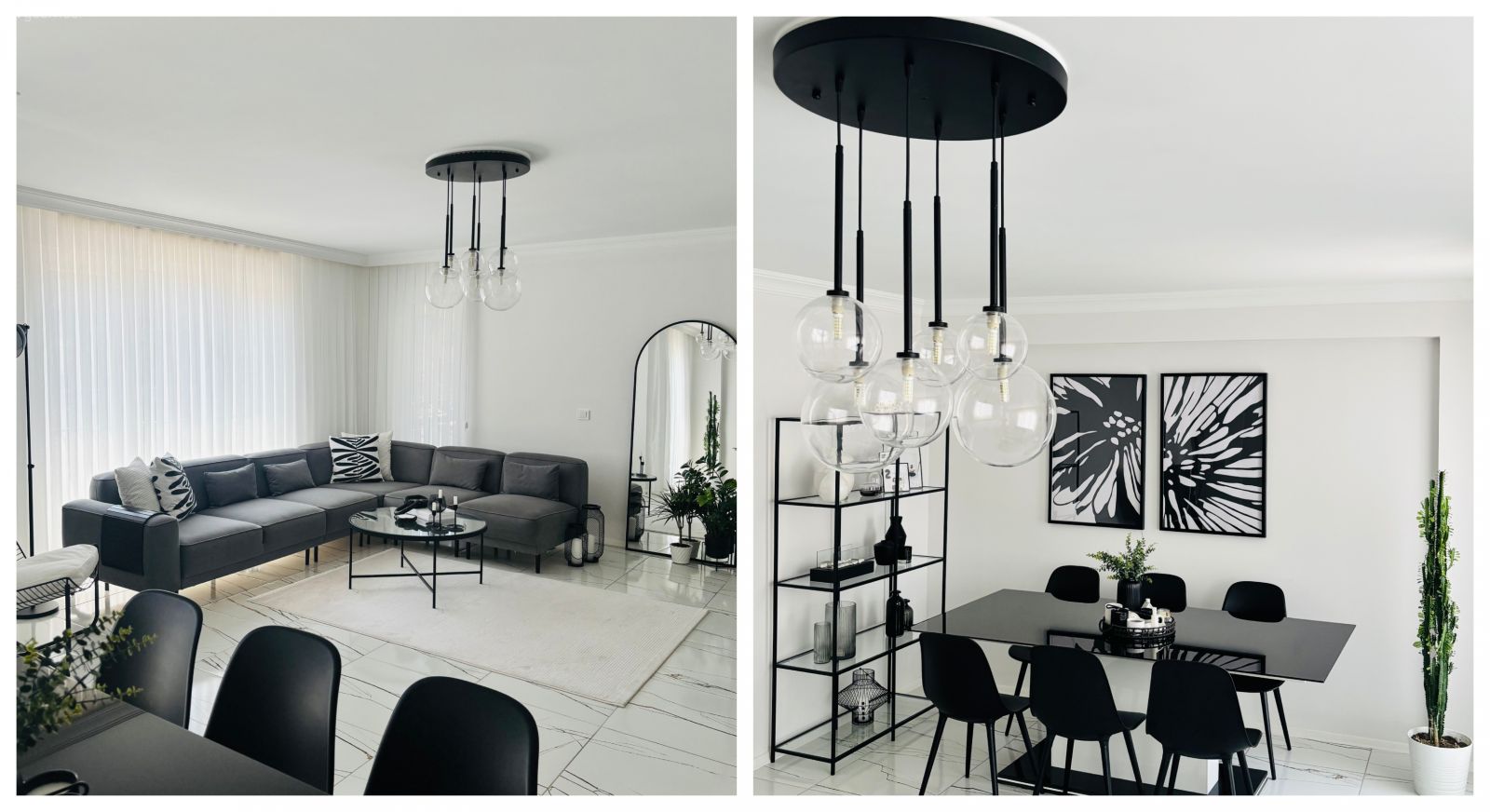 Beyaz, gri ve siyah! Bu üçü yan yana gelince modern stilin sevdiği renk paleti ortaya çıkar. Tıpkı şimdi konuk olduğumuz evde olduğu gibi.