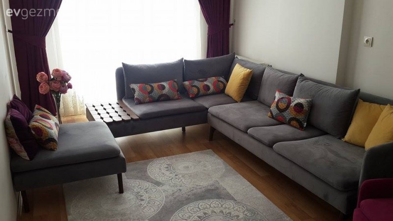 Suna hanım kiracı olduğu evinde, sevmediği lacivert mutfak dolaplarını yenilemeye karar veriyor. Düşük bütçeyle neler yapabilirim diye epeyce kafa yorduktan sonra, her ne kadar folyo kaplamada karar kılsa da, en sonunda boyamada karar kılıyor. Hatta dolapları boyadıktan sonra hızını alamayıp, eskiciden aldığı bankı, mermerli bordo masayı ve dayısının kapı önünden aldığı çok eski sandalyeleri de boyuyor. Detayları görelim..
