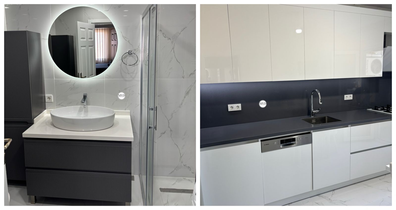 Şimdi sizinle bir profesyonel elinden çıkan banyo ve mutfağa konuk oluyoruz. Bu alanların özeti modern stil!