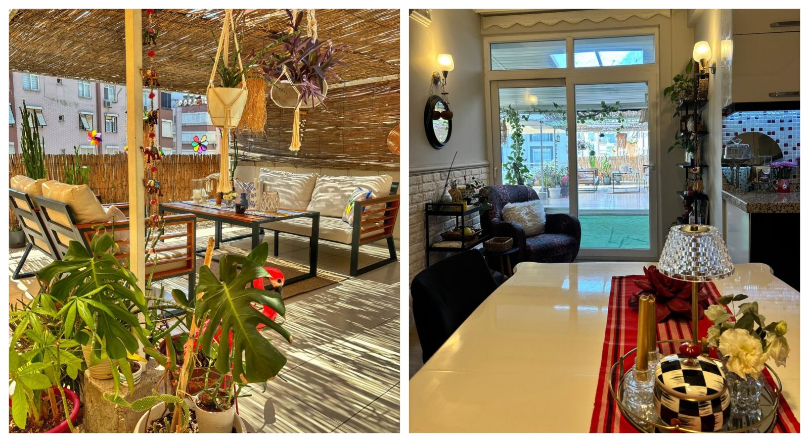 Apartmanında iç terası olan ev sahibimizin bu bölümüne bakınca Bali esintileri hissediliyor.