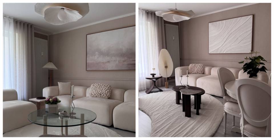 Bunun üzerine salonda krem ve lacivert renklerini bir araya getirmiş. İki tonun da yoğunluğu birbirine yakın oranda olmuş.