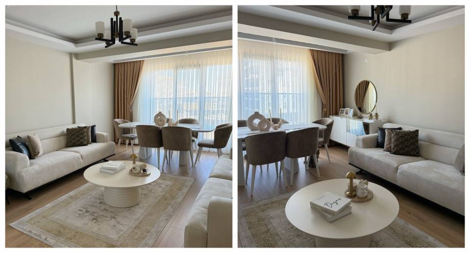 Balkonunu her mevsim kullanmak isteyen ev sahibimiz, alanı camla kapattırmış. Plise perdeleriyle de mahremiyeti sürdürmüş.