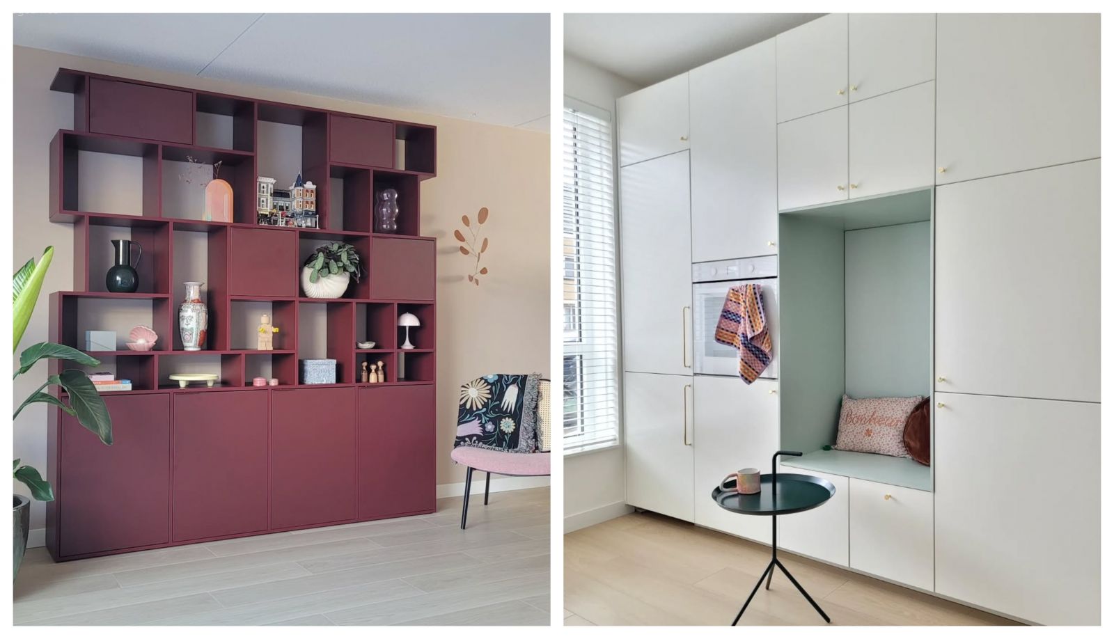 Mutfakta çok amaçlı dolap beyaz renge geçiş yapmış. Depolama, ankastre ve küçük bir oturma alanından oluşan bu dolap yeni rengiyle daha ferah görünmüş.