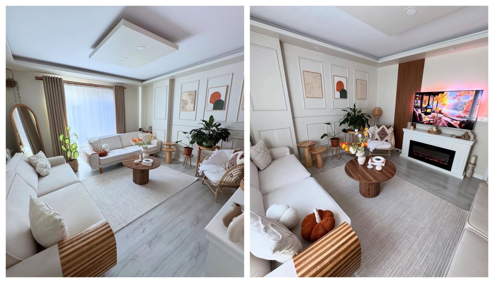 Ortama yeni eklenen çerçeveler, duvar çıtalarını keyiflendirmiş. Bitkiler ve boy aynası ise son dokunuşlar olmuş.