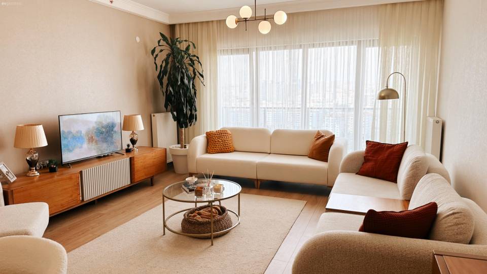 Ambiyansı zenginleştirmek için kullanılan aydınlatmalar ile birlikte ev sahibinin istediği sıcak ve ferah dekor oluşmuş.