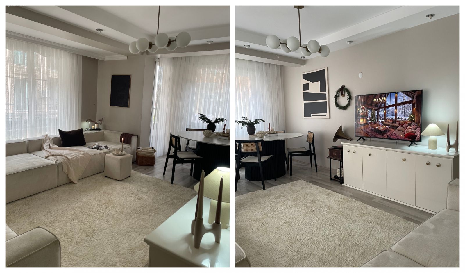 Salon, İskandinav, Modern, Beyaz, Bej, Siyah, Köşe koltuk, Koltuk takımı, Tül perde, Perde, Halı, Salon halısı, Hazeran, Sandalye, Yemek masası, Tv ünitesi, Tv ünitesi aksesuarları, Ev Aksesuar, Dekoratif Objeler